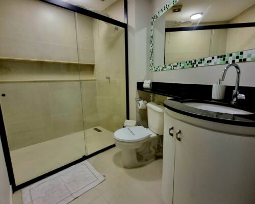 Flat com quarto, sala, cozinha, banheiro e varanda